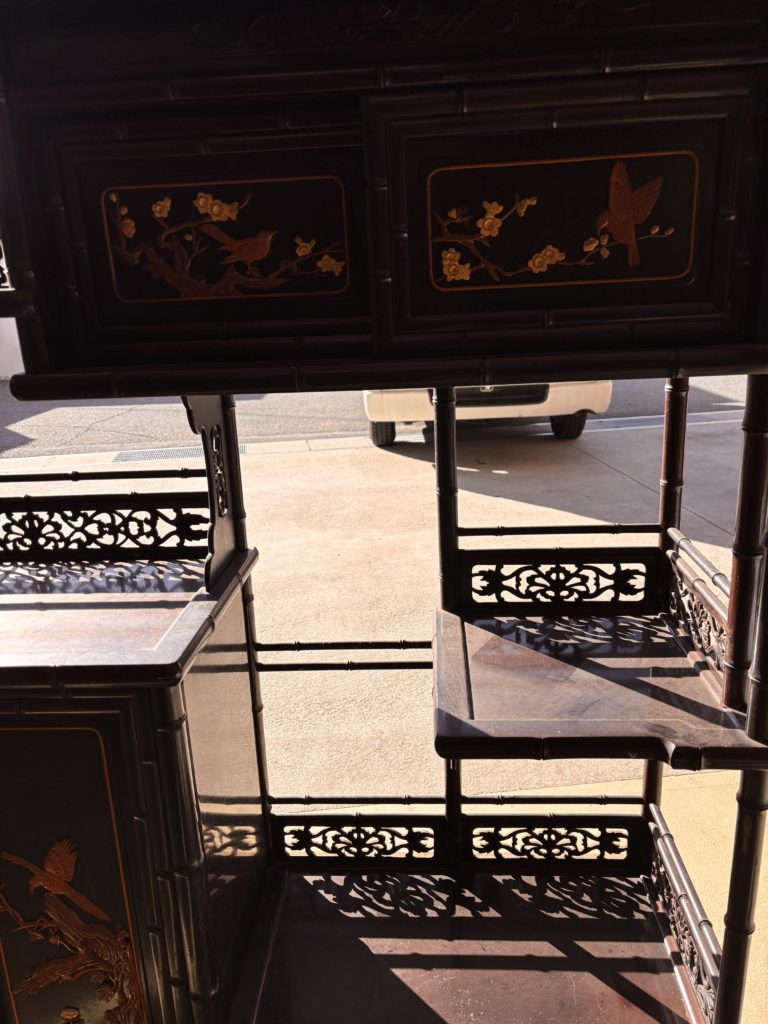 20年ほど空き家として放置されていたため、内部はかなり痛んでいました。住職が趣味で集めた中国家具が多かったです。時代は40ー50年前のものでしたが、中国のお客様に一定の需要があります。法具はほとんど、知り合いのお寺に寄付したそうですが、法具は時代によりますが、高価買取の対象となる商品となっております。